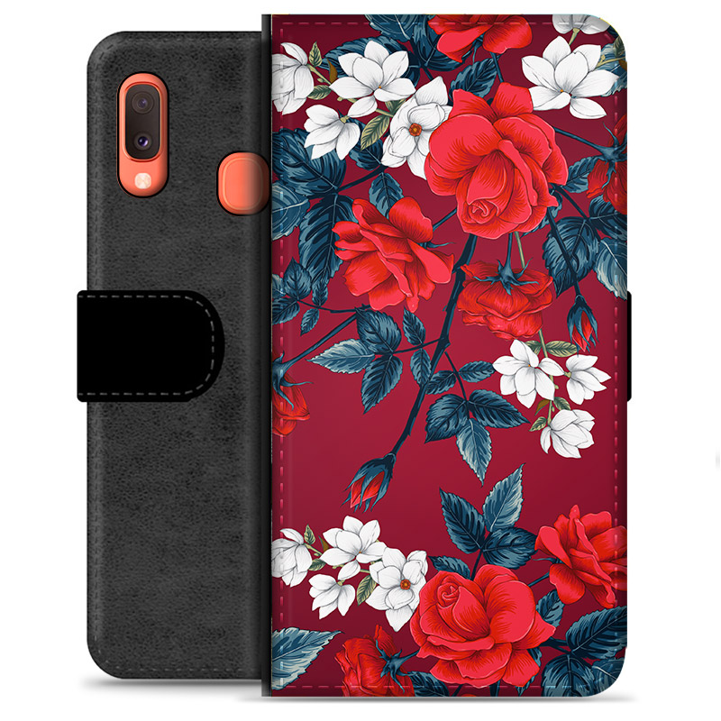 Prémiové peněženkové pouzdro Samsung Galaxie A20e - Vintage květiny