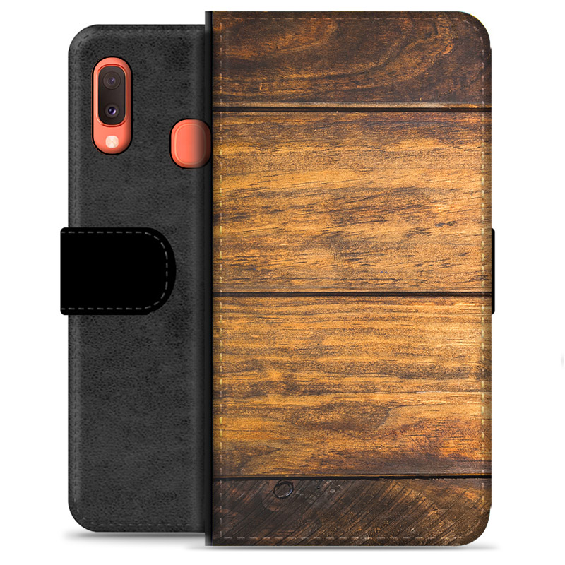 Prémiové peněženkové pouzdro Samsung Galaxie A20e - Dřevo