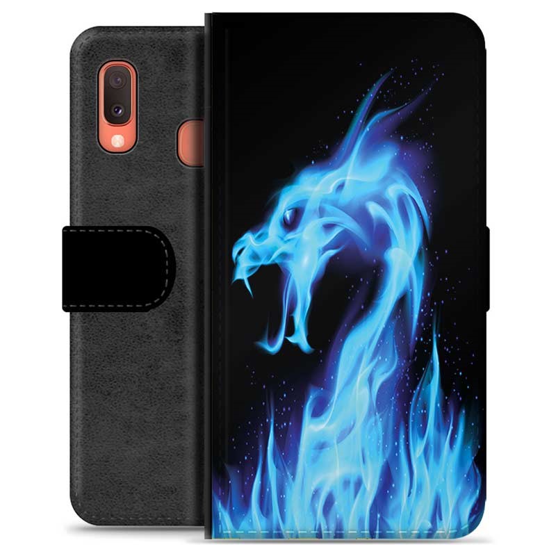 Prémiové peněženkové pouzdro Samsung Galaxie A20e - Modrý ohnivý drak