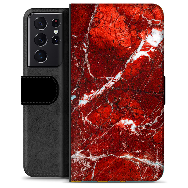Prémiové peněženkové pouzdro Samsung Galaxie S21 Ultra 5G - Červený mramor