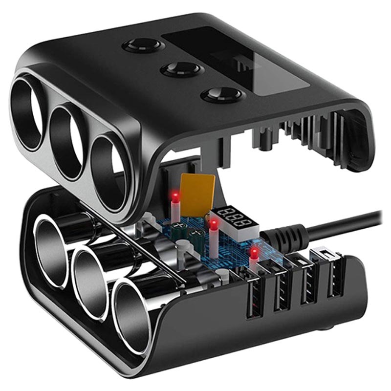 Expand your car lighter with three sockets and recharge up to four devices simultaneously via the USB ports with this fantastic car charger! Designed with LED display to show the charging status and vehicle battery voltage. The total power of three cigarette lighter sockets is 100W with an input of 12V/24V. Small and compact, this product is suitable for most vehicles, and it comes with a 58cm cable, which is enough for all your needs.