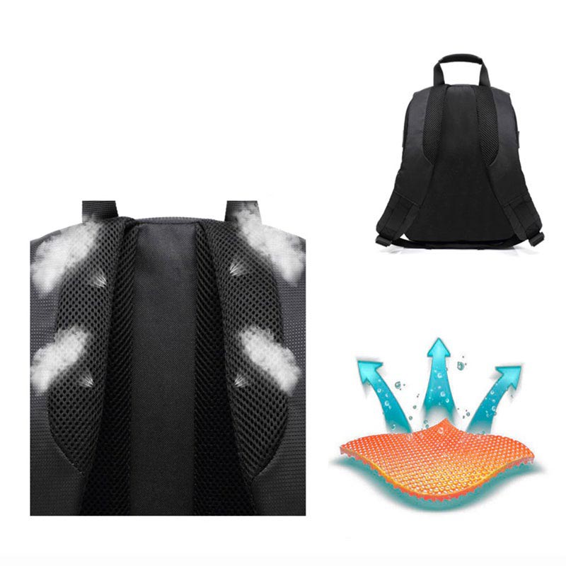 Pro nošení pohodlí je zadní část batohu vyrobena z prodyšného polstrovaného materiálu a má polstrovaný postroj ramen. Pouzdro fotoaparátu můžete také nést pomocí nylonové rukojeti nahoře.