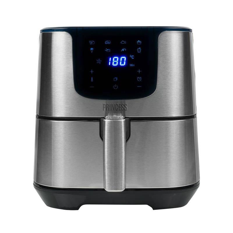 Prepare a variety of healthy meals in no time. The Princess fat-free fryer uses hot air and features a 5.5-liter capacity, making it perfect for families with several people. It supports up to 8 programs, including a frying function. It can adjust the temperature up to 200°C and offers a power output of up to 1,700 watts. It also has a built-in display and indicator light. Thanks to its well-thought-out design, using the device is simple and safe.