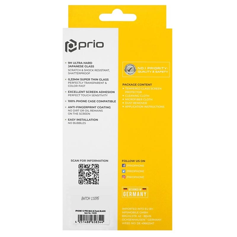 Zachovejte svůj displej iPhone 12 Pro Max pomocí Prio's 3D Tempered Glass Screen Protector.
