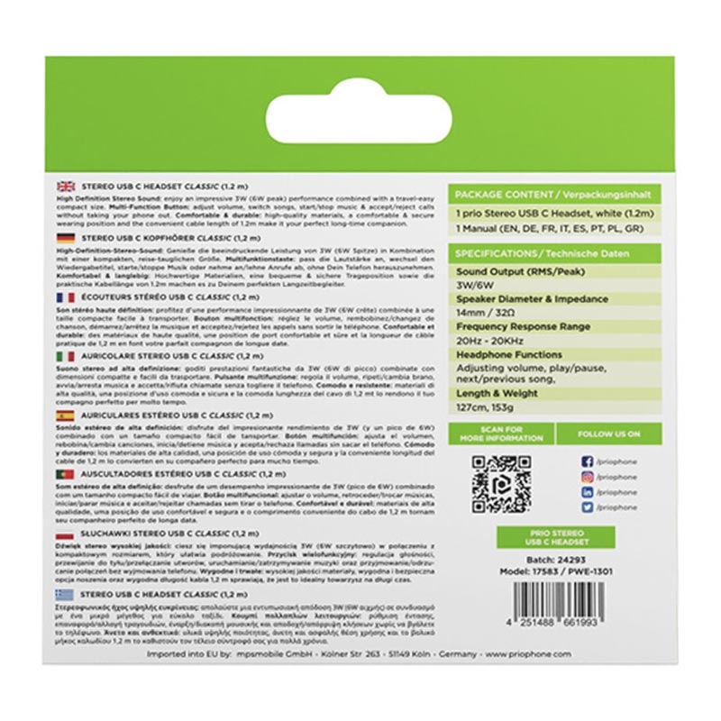 • Prio Classic sluchátka do uší USB-C s mikrofonem