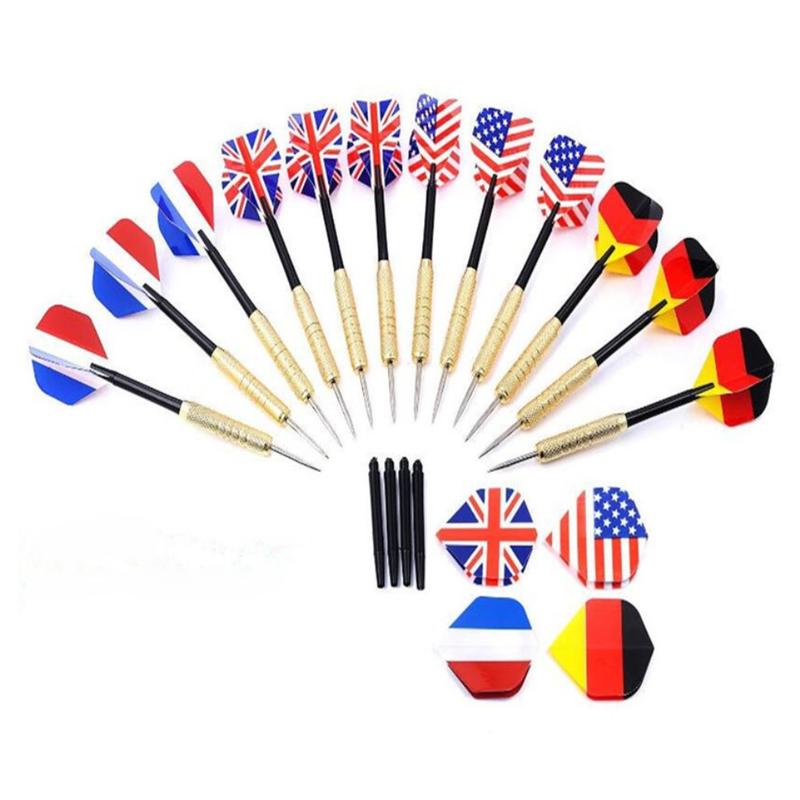 Elevate your dart game with this set of 12 professional-grade darts, each weighing 18 grams. Featuring brass barrels for enhanced grip and balance, these darts are designed to improve accuracy and performance. The set includes national flag flights, adding a touch of style and personalization to your play. Whether you're a seasoned player or a beginner, this comprehensive set offers the quality and durability needed for both casual and competitive dartboard games.
