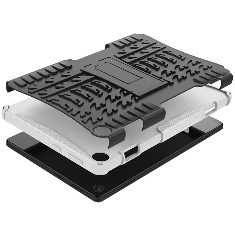 Stylové protiskluzové hybridní pouzdro s funkcí stojanu pro Lenovo Tab M10 Gen 3. Protiskluzový design zabraňuje vašemu Lenovo Tab M10 Gen 3 v pádu z rukou, a existují obrněné rohy, které zajistí vaše Lenovo Tab M10 Gen 3 z poškození, pokud klesne. Vyrobeno z plastových a TPU materiálů je pouzdro pevné a odolné.