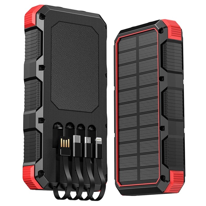 - Vestavěný solární panel, který nabije vaši energetickou banku na slunci