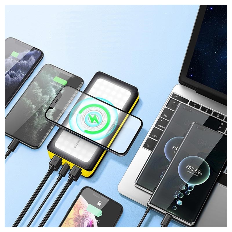 Sluneční banka / bezdrátová nabíječka Psooo PSOOO PSOOO PSOOO PSOOO PS-406 vám umožňuje současně dobít až šest zařízení. Tato super rychlá nabíjecí banka je vybavena jedním portem PD3.0 USB-C, jedním USB QC3.0, třemi porty USB-A a 15W bezdrátová nabíječka, takže můžete odsuzovat všechny své digitální gadgety, zatímco jste na venkovním Dobrodružství. Má velmi vysokou rychlost přeměny energie díky vestavěnému monokrystalickému solárnímu panelu křemíku a systému s více protekcemi pro bezpečné a spolehlivé nabíjení.