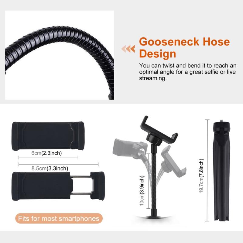 LED ring light can be mounted on the holder and take it anywhere, it can also be removed from the stand at any time, the tripod ball head can 360 degree rotating can free to adjust to any angle (The holder is not included)