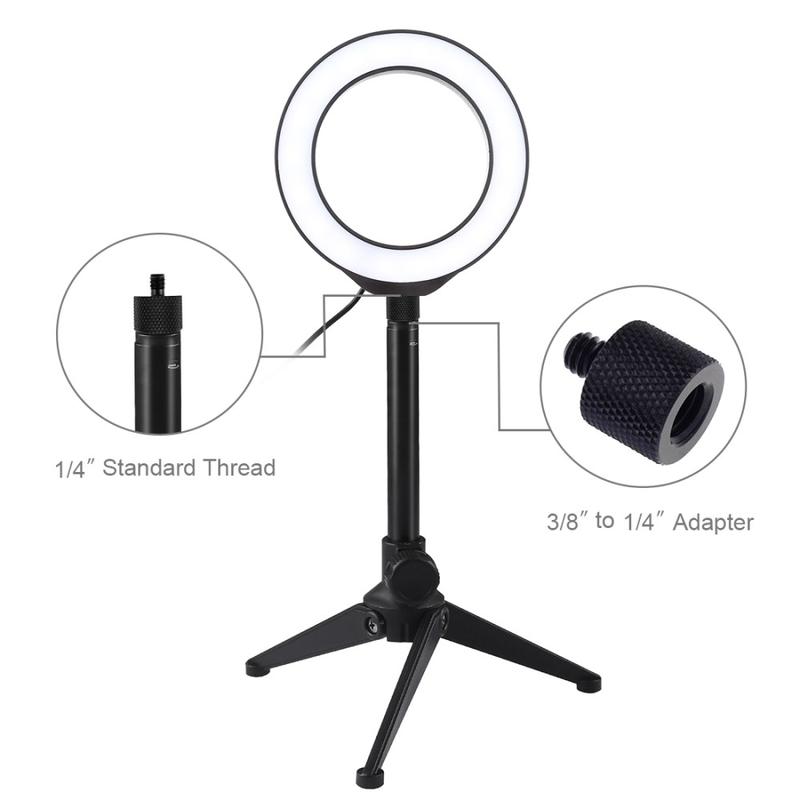 PULUZ 4.7" 12cm Ring Light + Desktop Tripod Selfie Stick Mount USB White Light LED Ring Vlogging Photography Video Lights Kits