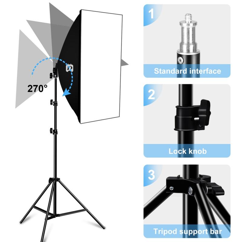 PULUZ Photography Lighting Light Tripod+50x70cm Photo Studio Softbox+E27 LED Lamp Bulb - EU Plug