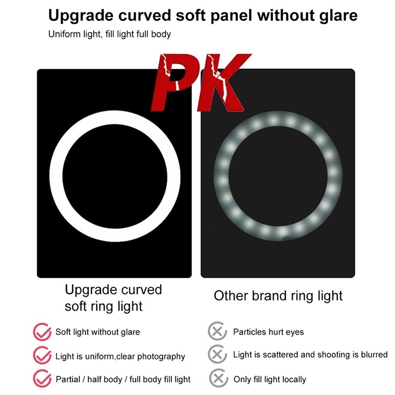 3 colors lighting mode adjustable brightness for your choose, you can adjust the color and brightness very easily, excellent brightness can be achieved without installing extra colorful filters. Three colors of soft natural light illuminate your beauty in different occasions