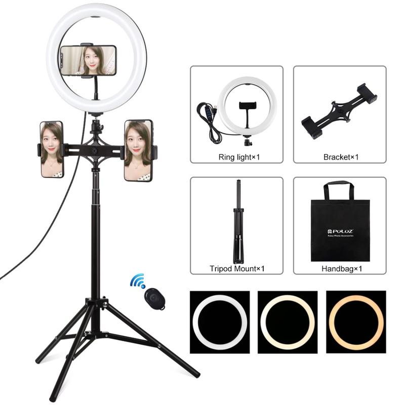 PULUZ PKT3066B 10.2" LED Selfie Ring Light Cell Phone Clamp Tripod Stand for YouTube Blogger Video Shooting