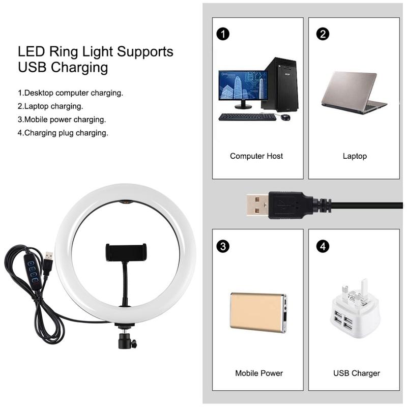 The USB ports can be used with multiple devices, such as connect computer host, laptop, mobile power and USB charger. You will be able to enjoy LED ring light at any time free