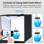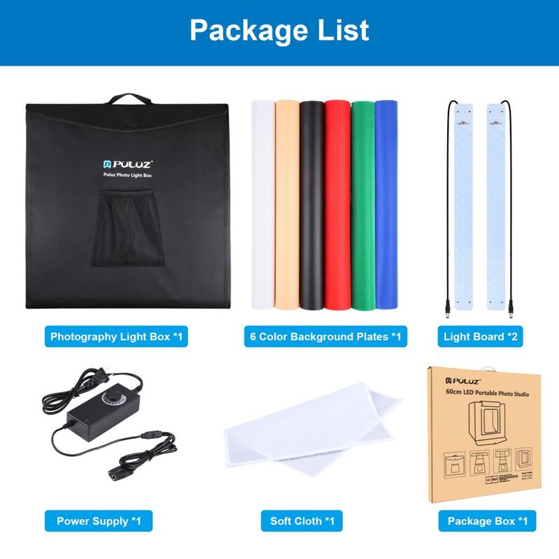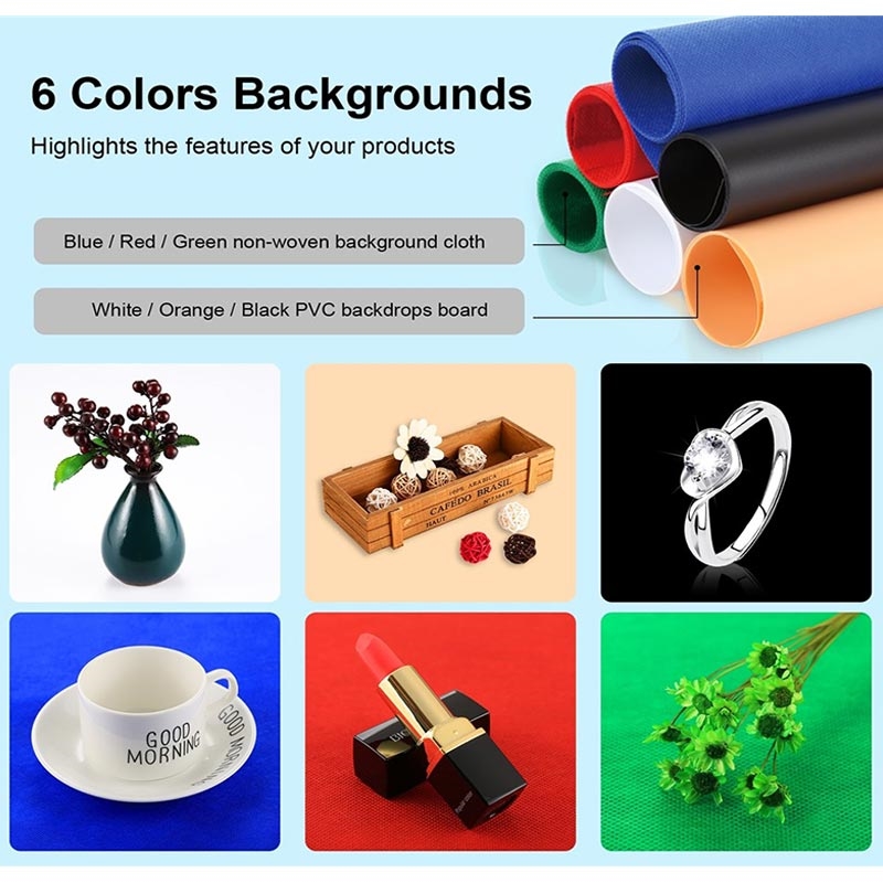 Comes with a carrying bag and 3 pieces of background paper boards (White, Orange, Black). The paper boards are wrinkle resistant and water resistant