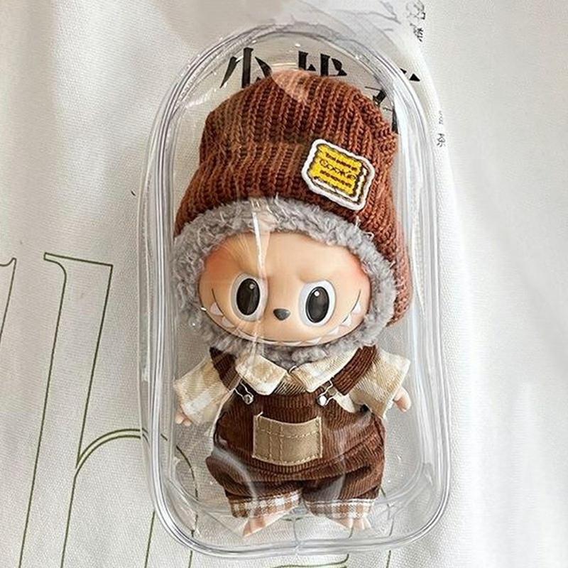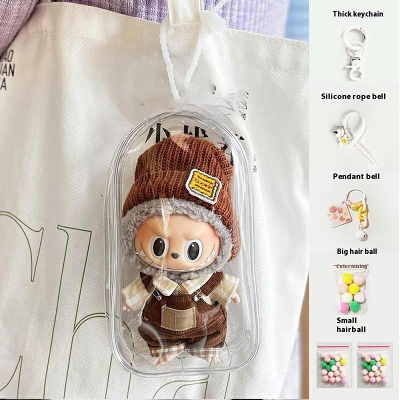 PVC Storage Bag with Keychain for 17cm Labubu Plush & Mini Figures - Dust-Proof Portable Storage Case