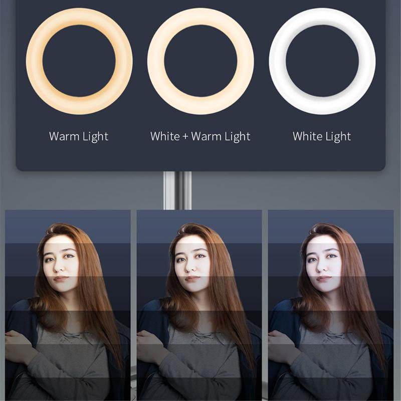 There are 3-color light mode options, support 9-gear adjustable, 8-inch ring light provides soft and charming illumination that helps smooth shadows and hide skin imperfections, perfect for video conferencing, zoom calls, live streaming, self-broadcasting, online teaching, and makeup session