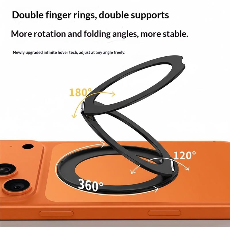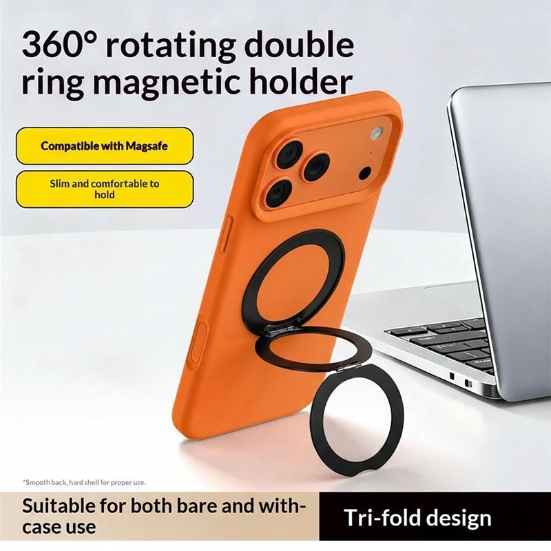 Q11 Ultra-Thin Tri-Fold Magnetic Ring Stand - 360° Rotating Adhesive Phone Holder, MagSafe Compatible