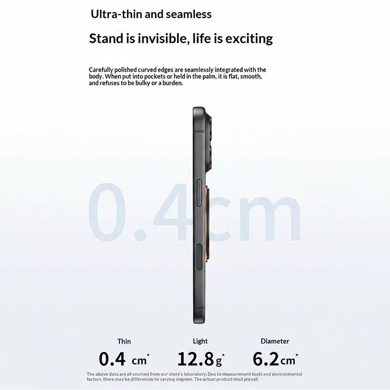 The Q11 ultra-thin tri-fold magnetic ring stand is a sleek phone grip and stand designed for flexible everyday use without adding bulk. With a triple-fold structure, it folds down compactly when not in use, while the 360° rotation lets you quickly adjust between portrait and landscape viewing. The adhesive backing makes installation fast and secure, and the built-in magnet adds compatibility with magnetic mounts and accessories.