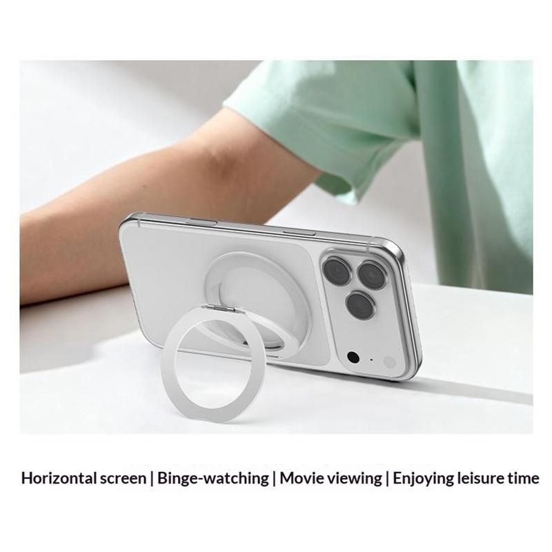 Q11 Ultra-Thin Tri-Fold Magnetic Ring Stand - 360° Rotating Adhesive Phone Holder, MagSafe Compatible