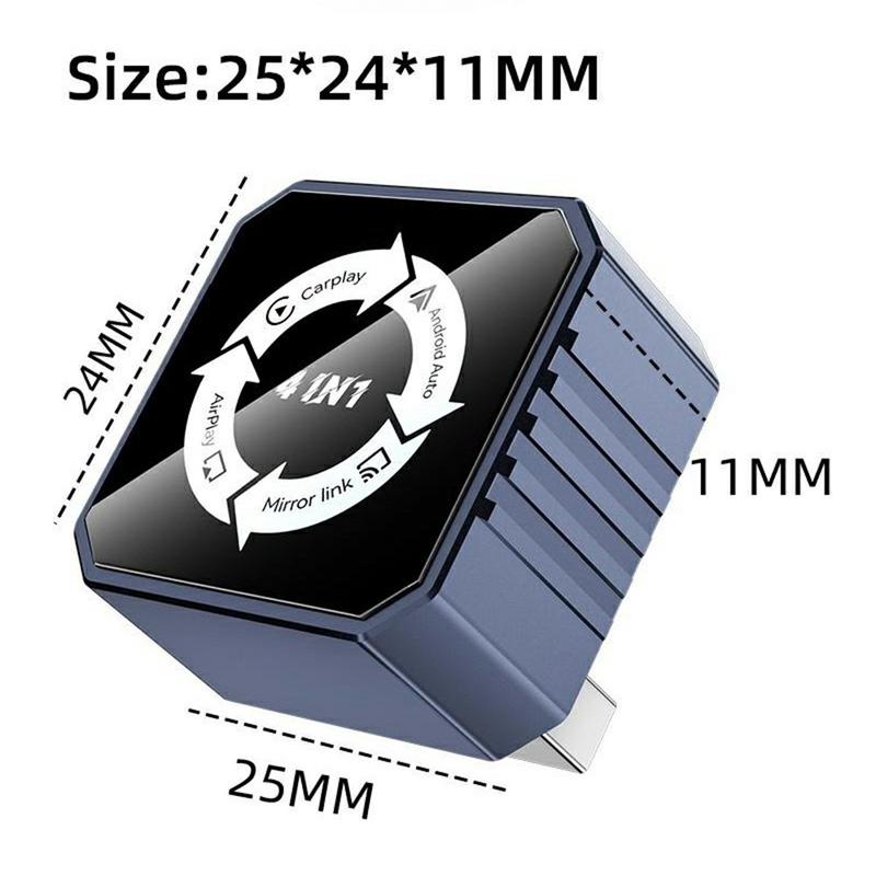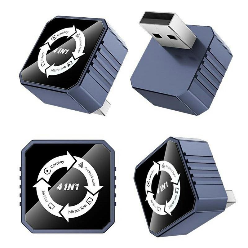 Upgrade your car with the Q1BVS 4-in-1 wireless Android Auto and CarPlay adapter. This compact smart box converts wired CarPlay and Android Auto into a wireless connection, while also supporting AirPlay and Mirror Link for a more flexible in-car experience.