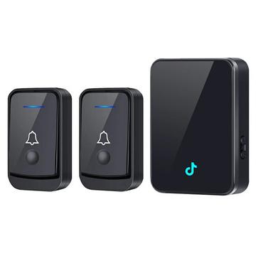 Q502 Wireless Doorbell Set with 2 Transmitters, 1 Receiver - 433MHz Door Chime, 45 Ringtones, IP44 Waterproof, 150-200m Range