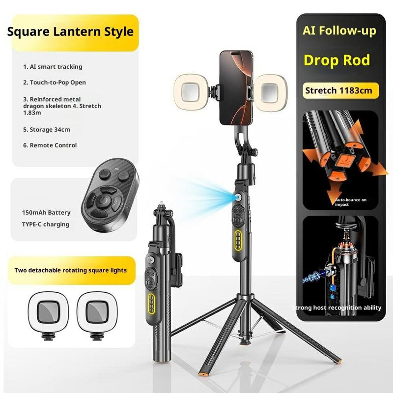 Q625 1.83m Bluetooth AI Tracking Quadripod Selfie Stick - Dual H-Shape Fill Lights, Anti-Shake, Remote Control