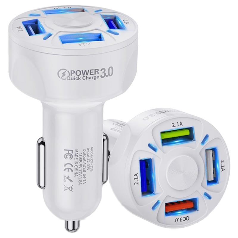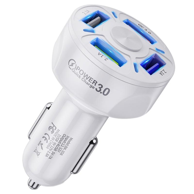 QC3.0 Fast Car Charger BK-358 - 4 x USB - bílá