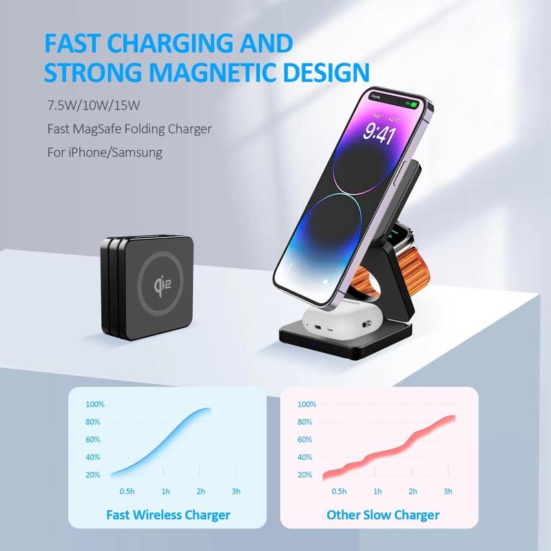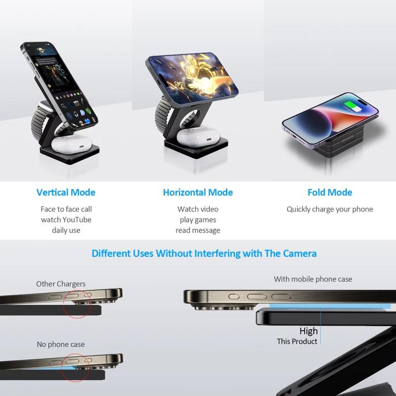 This charger simplifies daily charging by combining three charging zones into one foldable stand. Qi2 magnetic alignment improves convenience and efficiency for compatible phones, while built-in protection features add peace of mind. A smart choice for anyone who wants a cleaner setup at home and a compact charging solution for travel.