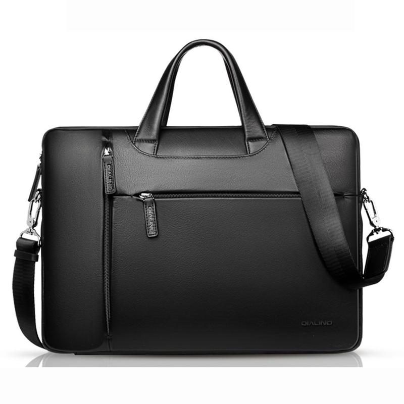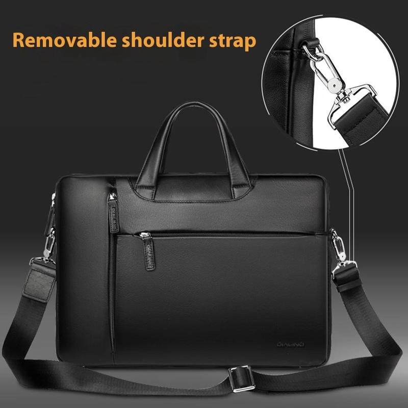 Qialino Genuine Leather Laptop Bag - Premium Cowhide Carry Case with Removable Strap & Multi-Compartment Protection