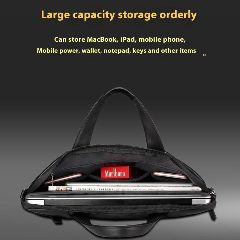 Give your notebook first-class treatment with this Qialino laptop bag, crafted from top-grain cowhide that shrugs off everyday splashes while looking effortlessly professional. A plush fleece and pearl-cotton lining cushions devices up to 15 inches, and the detachable shoulder strap lets you swap between briefcase and cross-body carry in seconds. Multiple inner pockets keep phone, power bank and notebook neatly organised for streamlined travel.