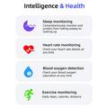 - Comprehensive Health Tracking via the Smart Health app – Monitors heart rate, blood oxygen, sleep quality, and activity levels.