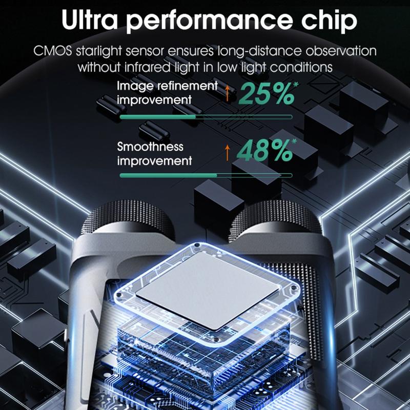 Explore the outdoors day or night with the R12 Infrared Night Vision Binoculars, engineered to deliver crisp, bright images even in 100% darkness. Equipped with an ultra-large F1.2 aperture and military-grade optical components, these binoculars capture high-definition photos and videos with exceptional clarity. The advanced CMOS starlight sensor allows long-distance observation in low-light environments even without switching on infrared light. With 7 levels of infrared adjustment and a powerful 850 nm spotlight, you can view subjects clearly up to 300 m away in complete darkness. All captured media can be exported to a computer using the included data cable, making this device perfect for wildlife observation, surveillance, camping, hiking and night exploration.