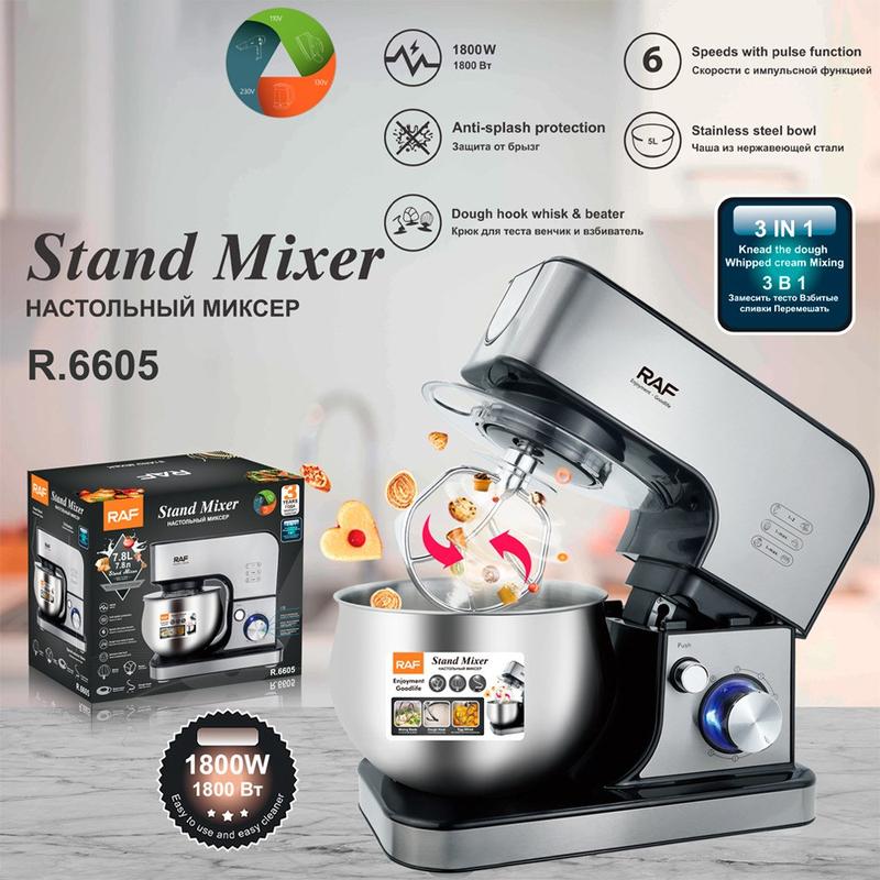 The RAF R6605 Automatic Dough Mixer is a powerful and versatile kitchen appliance designed to simplify everyday cooking and baking. With a robust 1800W motor, a large 5L stainless steel bowl, and multiple mixing attachments, it easily handles kneading, blending, whipping and mixing for a wide range of recipes.