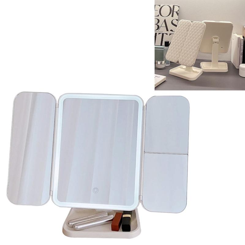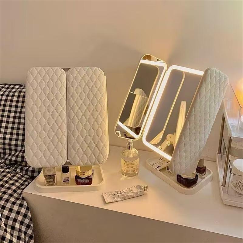 Perfect your look anytime, anywhere with the rechargeable tri-fold LED makeup mirror, designed to bring professional lighting and magnification to your daily beauty routine. With adjustable brightness, multiple color temperature modes, and a portable tri-fold design, this elegant vanity mirror is as functional as it is stylish.