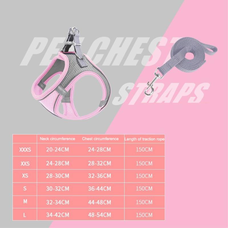 Enhance your pet's comfort and safety during outdoor adventures with our Outdoor Reflective Dog Harness and Breathable Mesh Cat Vest. Designed for small dogs and cats, this harness features a vest-style design that evenly distributes pressure, reducing strain on your pet's neck. Crafted from breathable mesh material, it ensures a soft and comfortable experience, while reflective strips enhance visibility during low-light conditions. The included 150 cm leash provides ample freedom for your pet to explore securely.