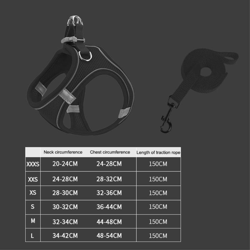 Enhance your pet's comfort and safety during outdoor adventures with our Outdoor Reflective Dog Harness and Breathable Mesh Cat Vest. Designed for small dogs and cats, this harness features a vest-style design that evenly distributes pressure, reducing strain on your pet's neck. Crafted from breathable mesh material, it ensures a soft and comfortable experience, while reflective strips enhance visibility during low-light conditions. The included 150 cm leash provides ample freedom for your pet to explore securely.