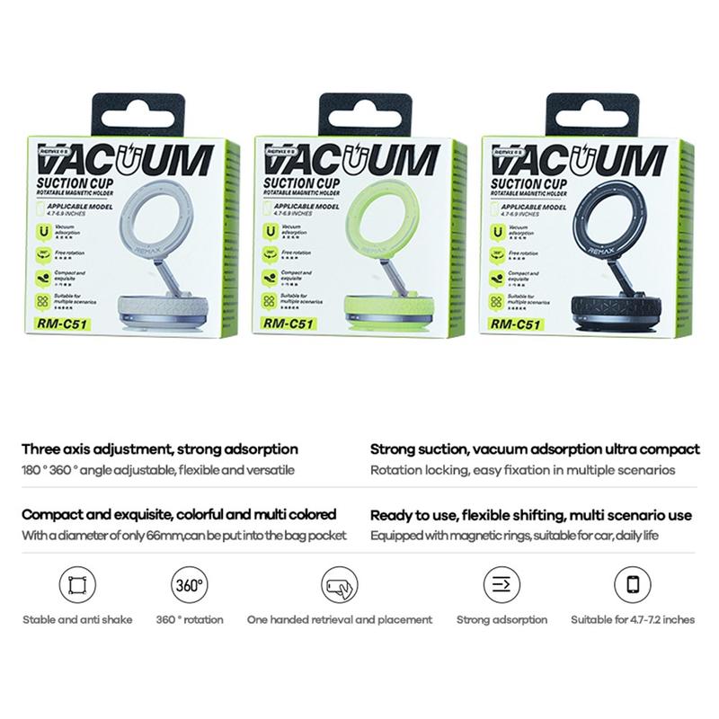 REMAX RM-C51 3-Axis Magnetic Phone Holder - Vacuum-Lock Suction Cup Holder for Car, Home & Travel