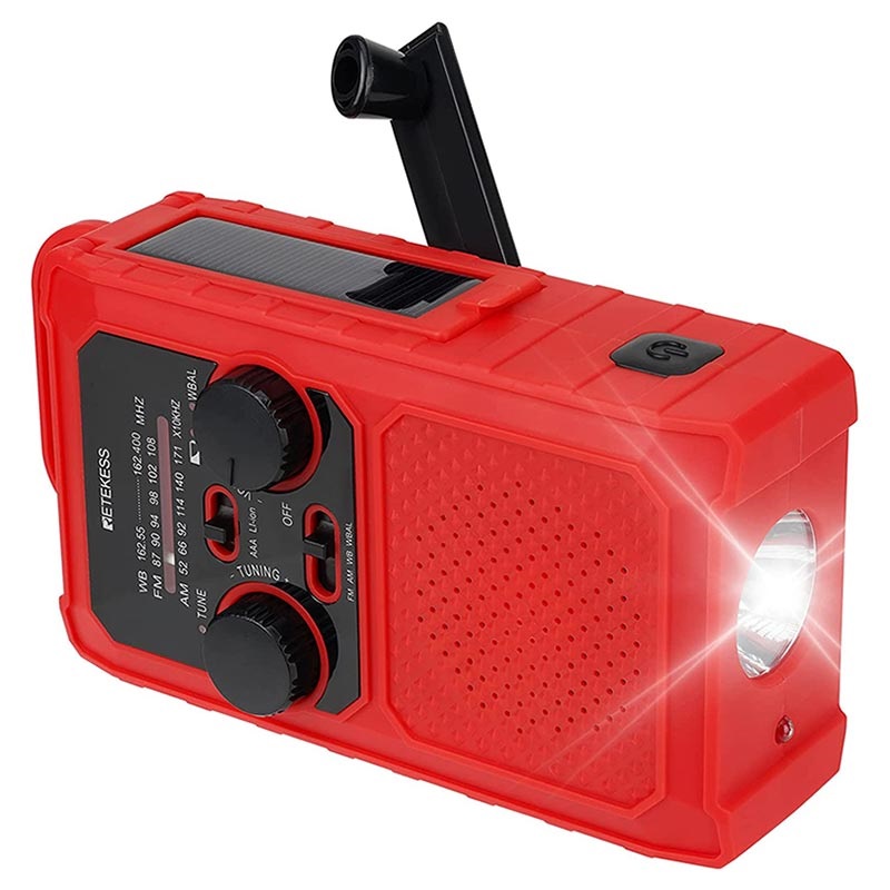 Retekless TR201 Přenosné ruční klikové rádio se solárním panelem, LED baterka, funkce napájecí banky, SOS - FM/AM/NOAA, 5000MAH