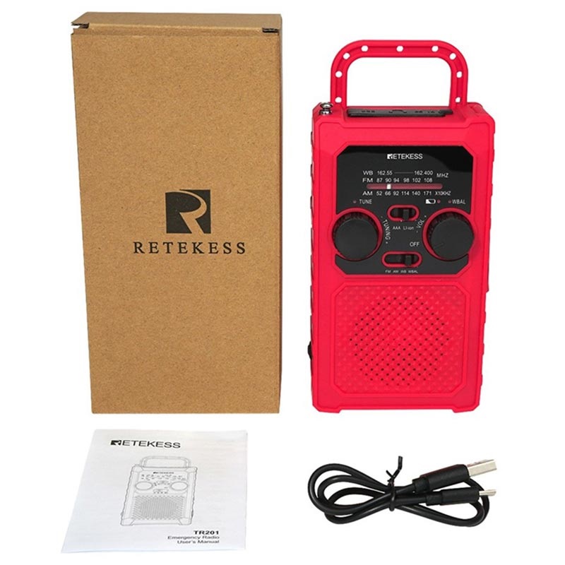 Multifunkční rádio Retekless TR201 je vyrobeno jako váš věrný společník během outdoorových aktivit nebo mimořádných událostí. Podporuje čtyři možnosti napájení - ruční kliky, sluneční energii, nabíjení portů USB nebo 3 baterie AAA (nejsou zahrnuty). Toto retekless rádio vám umožní poslouchat upozornění na počasí NOAA nebo chytit rádiové signály AM/FM/WB, zatímco hlasitý alarm SOS vám pomůže v případě potřeby zaslat signál pro pomoc.
