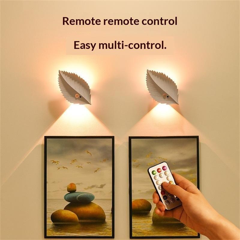 RGBW Rechargeable Leaf Night Light with Motion Sensor and Remote - Magnetic Wall Lamp, Stepless Dimming, 10 Colours, 2000mAh, USB-C