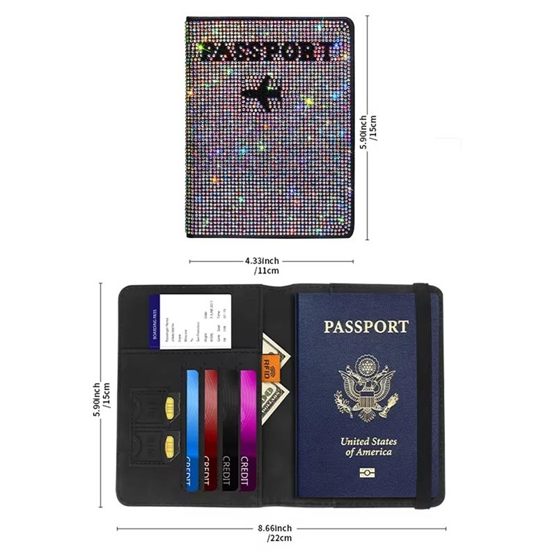 Travel in style with the rhinestone passport holder & luggage tag set, a glamorous accessory duo designed for elegance and practicality. Crafted from durable polyurethane and adorned with dazzling rhinestones, this matching set brings luxury and sparkle to every journey.