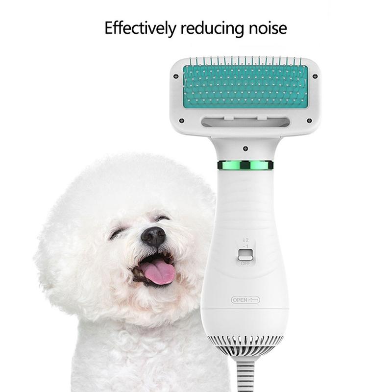 - 2-in-1 grooming tool: hair dryer + slicker brush for drying and deshedding together