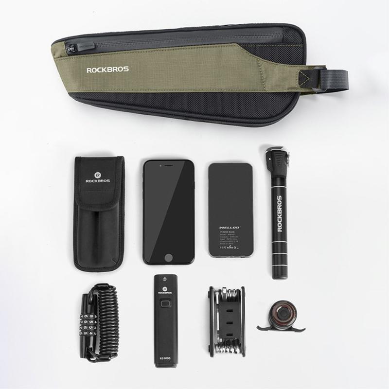 ROCKBROS 0.65L Nylon MTB Bike Front Beam Bag Reflective Bicycle Tube Bag, Upper