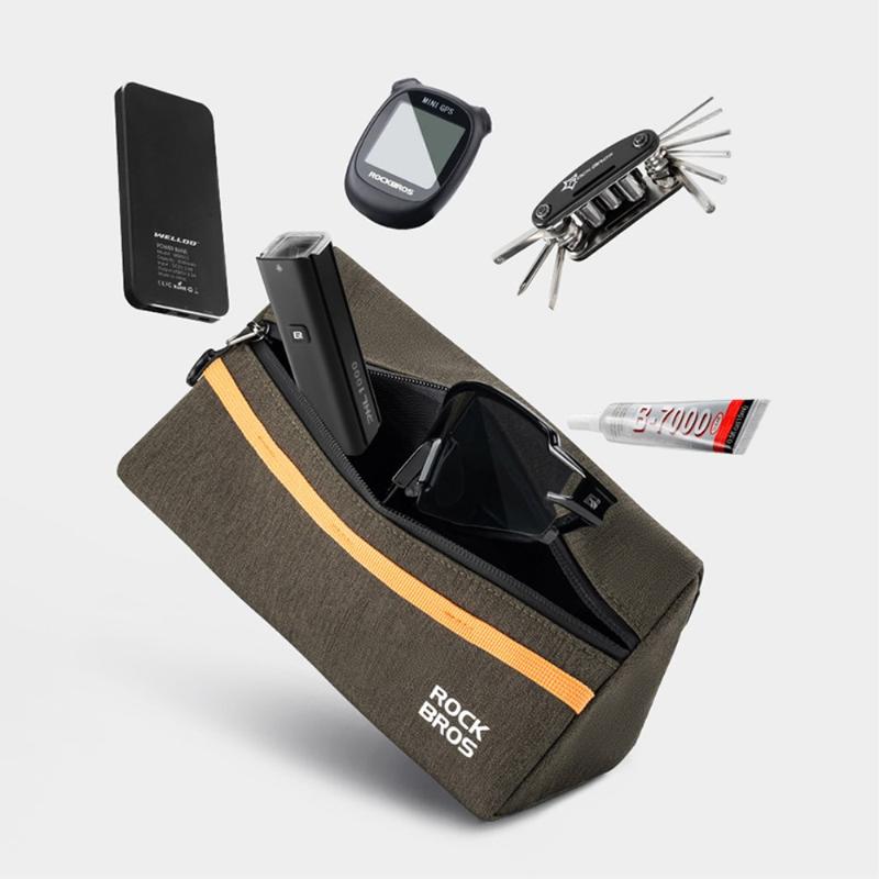 ROCKBROS 1.3L Triangle Bicycle Front Beam Bag Polyester Storage Pouch for Bike - Army Green