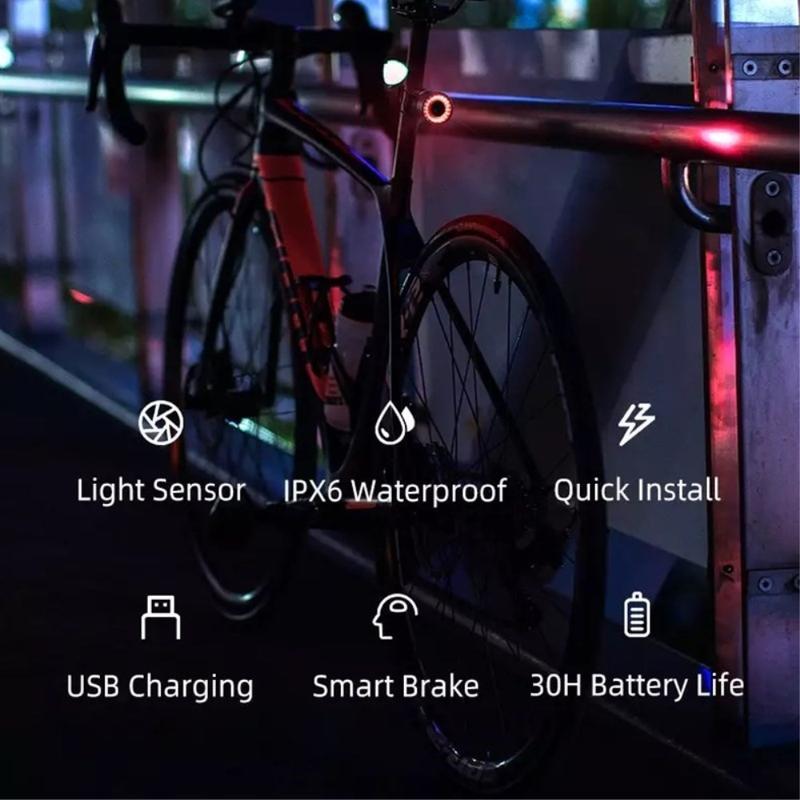 ROCKBROS Q3 Sensing Auto On/Off Bicycle Light Bike Taillight Waterproof USB LED Bike Cycling Light for Night Riding - Black