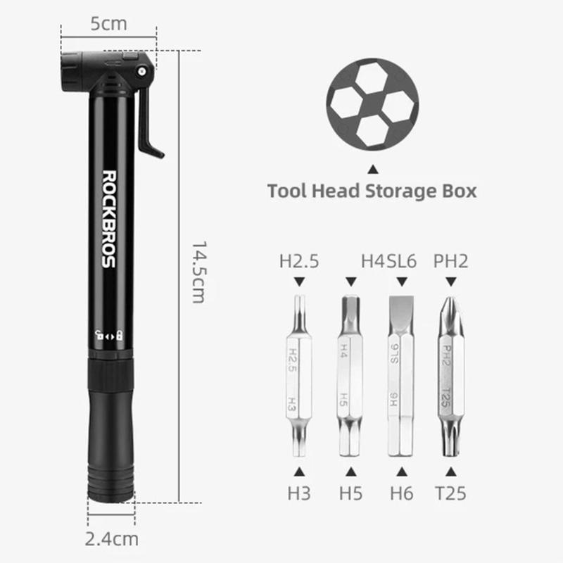 ROCKBROS TG-1616 Portable 120PSI Bicycle E-Bike Tire Air Pump Bike Basketball Metal Inflator with Ratchet Tools