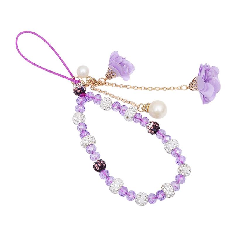 18.7cm Crystal Bead Phone Lanyard with Rose Flower Charms - Wrist Strap Hand Chain Mobile Accessory