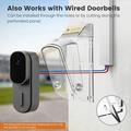 The mounting bracket supports both wired and wireless doorbells. A pre-cut cable hole allows clean cable routing, while the scored backplate can be easily adjusted for custom installations.
